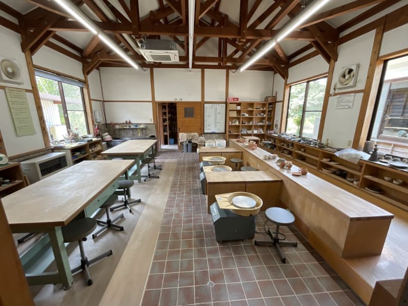 このゾーンは各工房を場として、陶芸教室、織物教室、竹細工教室、仏像彫刻教室、木工教室等を開設しています。